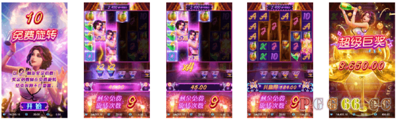 PG《夜醉佳人(Cocktail Nights)》是一款6轴5行消除类游戏,采用欧美风格设计,波峰为对抗型。游戏以调酒为主题,玩家可体验翻倍的微醺之乐。RTP为96.75%,最高中奖倍数达中奖线投注金额的100,000x,最高免费旋转倍数x2或更多。游戏设有400至15,625个中奖路(20条基础投注),并在第2至5列卷轴底部附加轴,增添层次感,享受高达5,173x的理论最高赢奖倍数。