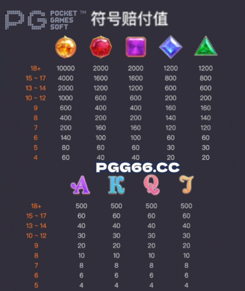中奖条件:水平或竖直方向连续4个及以上相同符号即可赢奖,百搭符号可替代普通符号(免费旋转符号除外)。